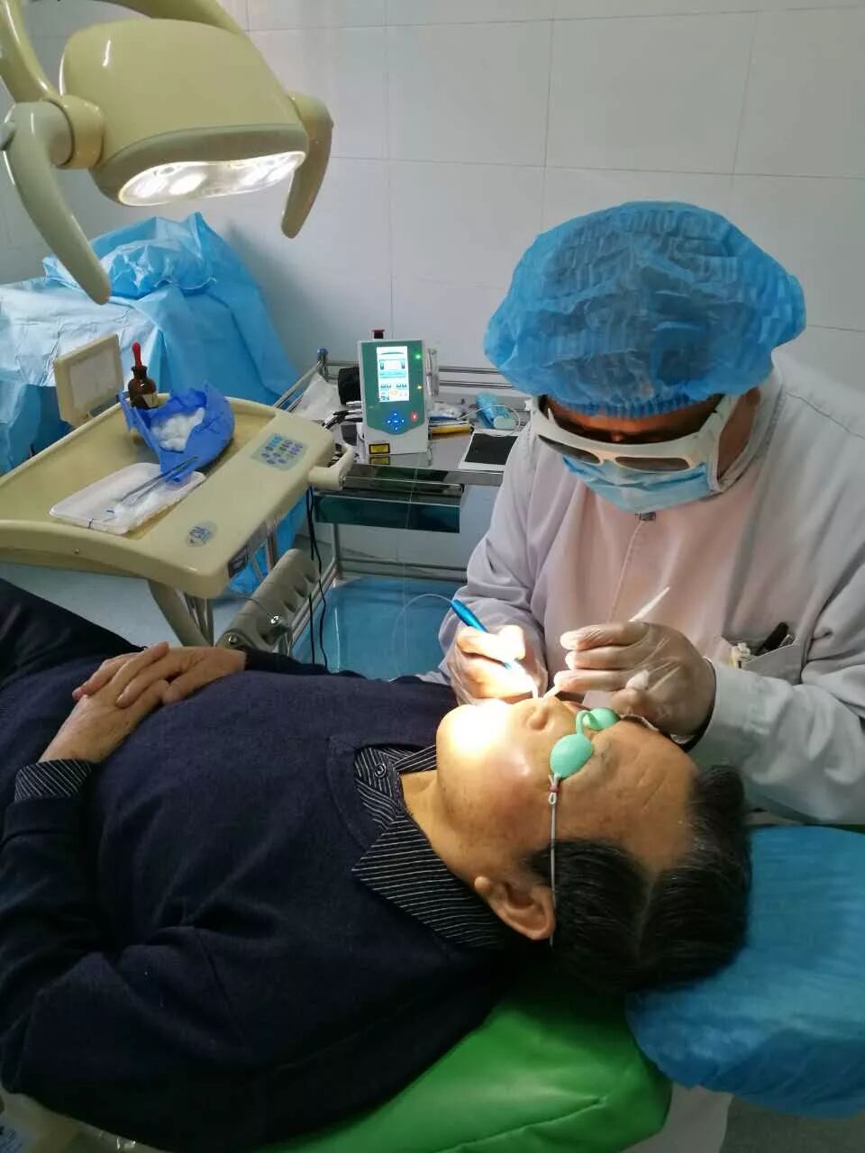 口腔科主任马树辉为刘大叔进行了楔状缺损区激光脱敏治疗。脱敏治疗后,马上为刘大叔进行了吹冷气试验刘大叔说牙不疼了,治疗效果立竿见影。