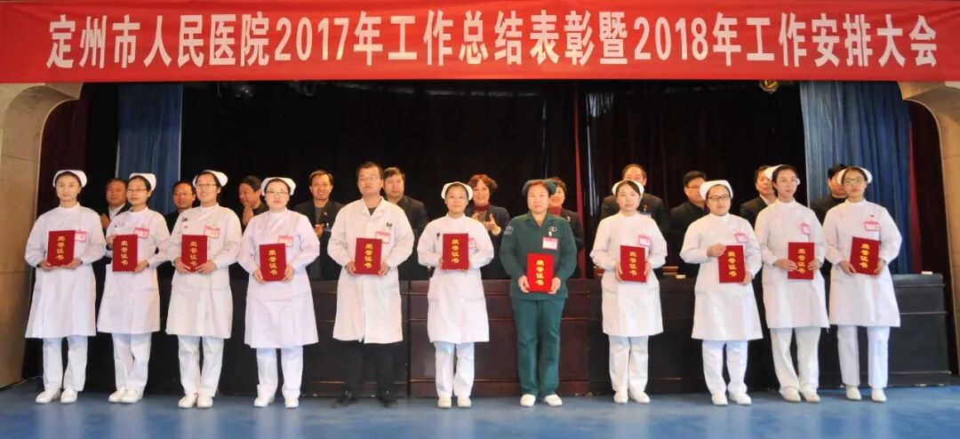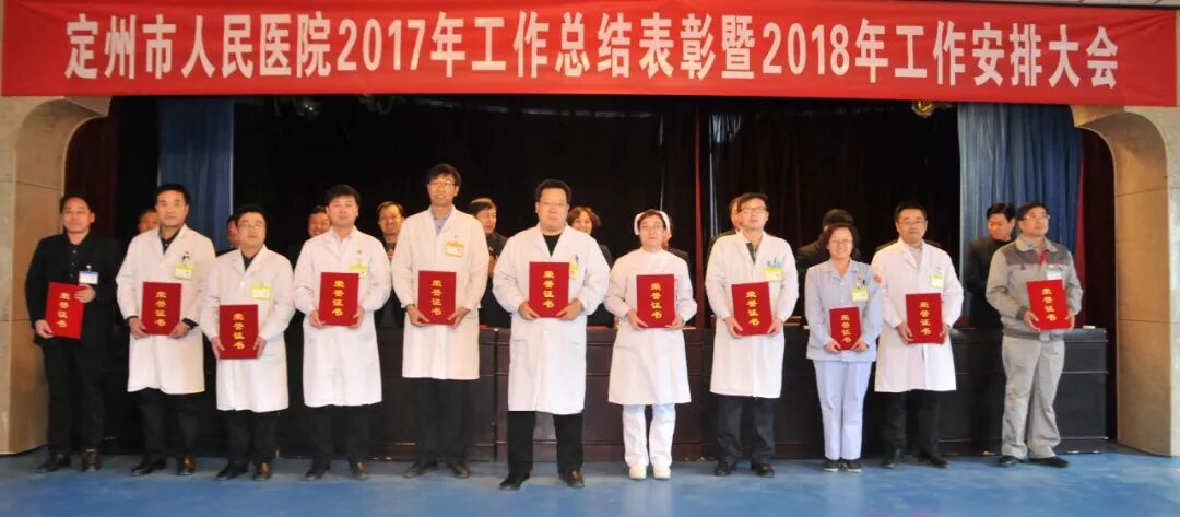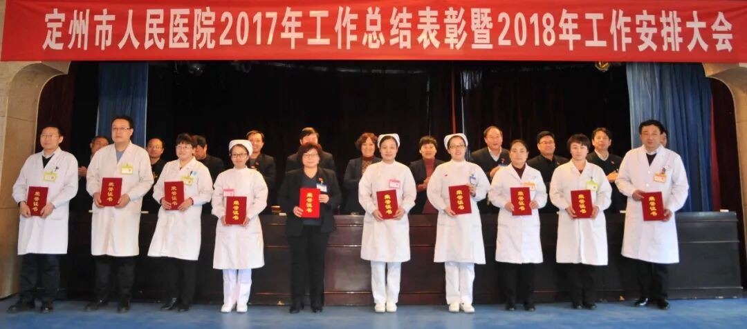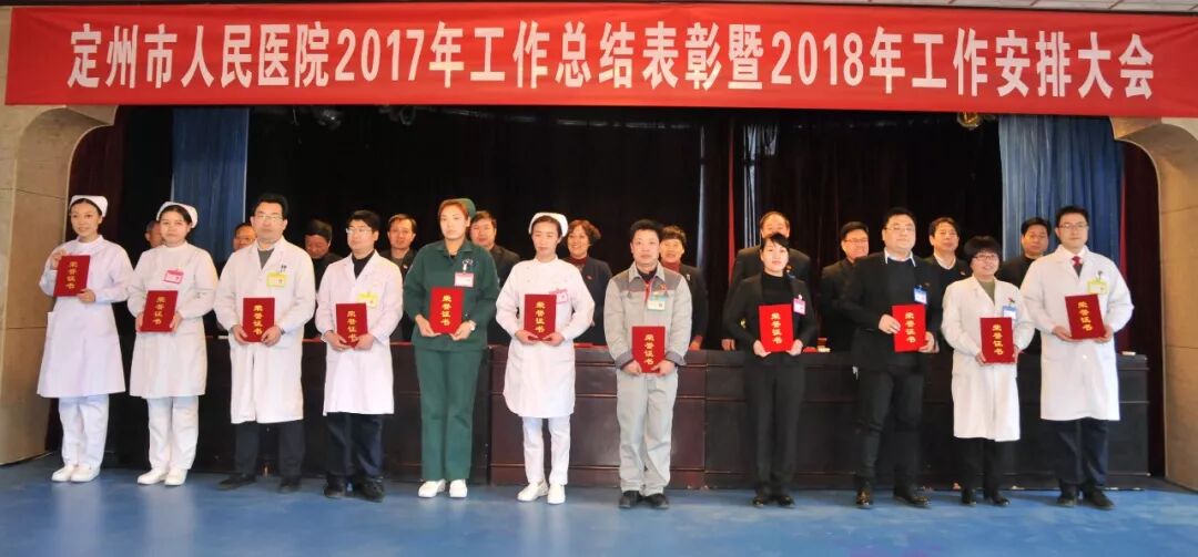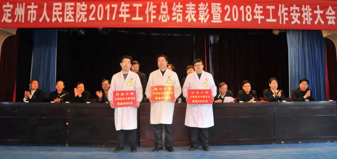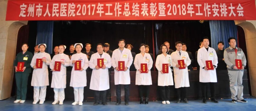 首先,对2017年度各项工作的先进科室先进个人、开展新技术新项目科室和发表论文作者、星级护士以及病历书写优秀科室和个人进行了表彰。