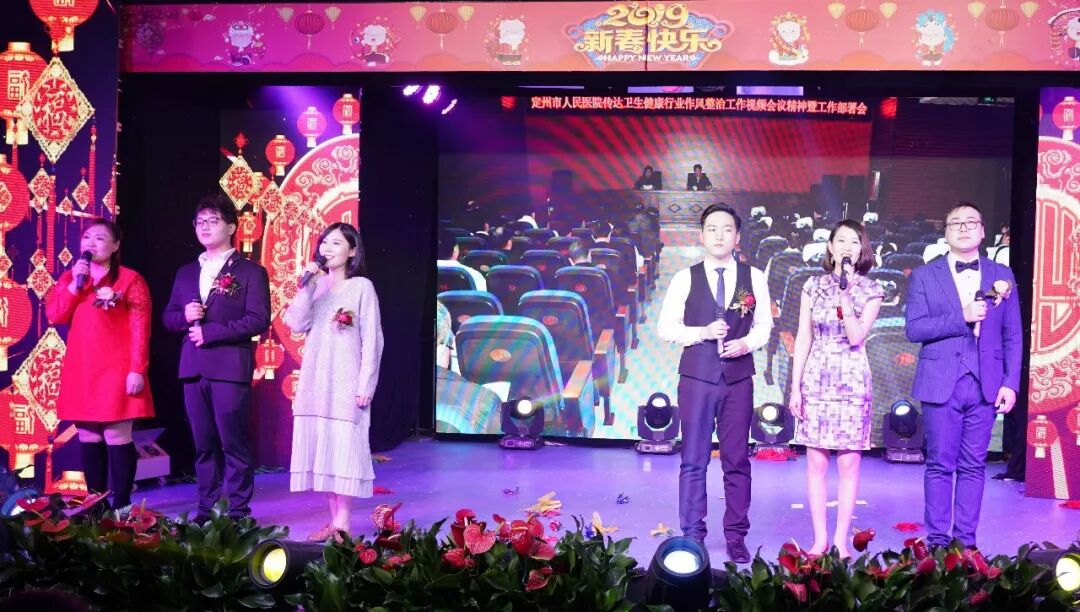 市卫生健康局局长高明等领导应邀观看联欢晚会。我院院长崔玉红、院党委书记齐增茹等院领导及300余名职工一起观看了联欢晚会。晚会还通过定州房产网进行了全程网络直播,近64万网友观看了晚会。