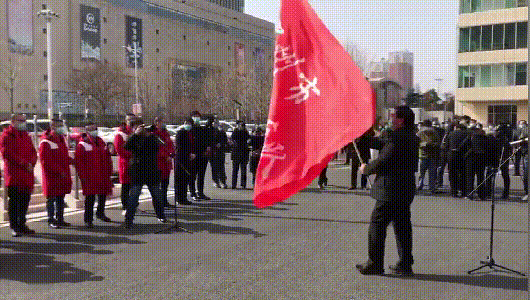 在定州市第二批支援湖北医疗队出征仪式上,我院消化内科主任、医疗队队长高铁铭从市委书记王东群手中接过队旗,并代表5名战友庄严表态: